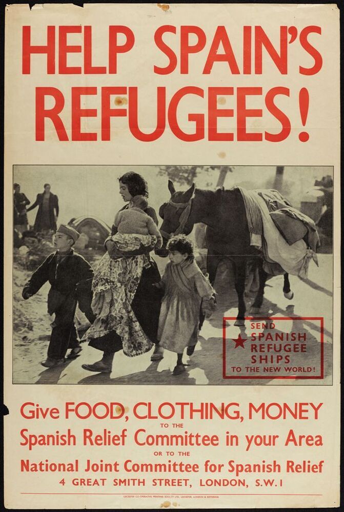 Scope and ContentPoster with an image of a woman and three children leading a donkey, with the text: Help Spain refugees. Give food, clothing, money to the Spanish Relief Committee in your area or to the National Joint Committee for Spanish Relief'. Produced by the National Joint Committee for Spanish Relief.