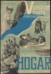 Scope and ContentPoster showing refugee children being cared for and the text: Vuestra hijos estan bien atendidos. Un nuevo carinoso hogar para los ninos refugiado. Issued by the Ministry of Public Instruction