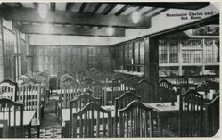 Scope and ContentPostcard showing the Oak Room in the Manchester Clarion Cafe