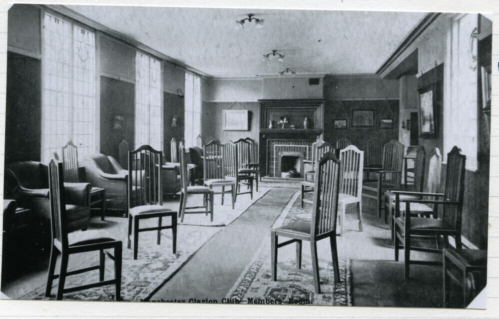 Scope and ContentPostcard showing the Members' Room in the Manchester Clarion Cafe