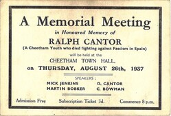Scope and ContentNotice of a memorial meeting in honour of Ralph Cantor, of Cheetham who was killed during the Spanish Civil War