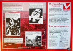 Scope and ContentExhibition board for the nuclear free movement showing images of nuclear explosions and giving contact details for more information
