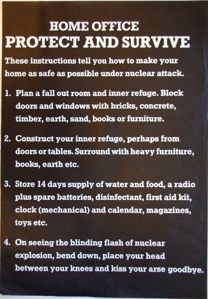 Scope and ContentPoster satirising the Home Office Protect and survive instructions when under nuclear attack.