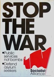 Scope and ContentPlacard with the text: Stop the War. Public services not bombs. Defend asylum seekers.