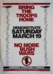Scope and ContentPoster with images of planes dropping bombs and the text: Bring the troops home. Demonstrate Saturday March 19. No more Bush wars.