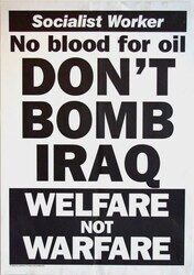Scope and ContentPoster with the text: No blood for oil. Don't bomb Iraq. Welfare not warfare. Produced by Socialist Worker
