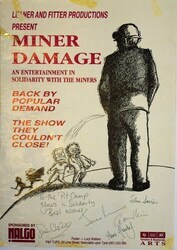 Scope and ContentPoster advertising the play - Leaner and Fitter productions present Miner Damage, an entertainment in solidarity with the miners'. Sponsored by NALGO. Signed by members of the cast [?]