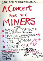 Scope and ContentHandwritten poster advertising a concert for the miners to be held on 7th March. Produced by Sale and Altrincham Labour Party.