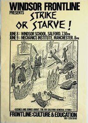 Scope and ContentPoster - Windsor Frontline presents Strike or starve! Scenes and songs about the 1911 Salford general strike. At Windsor School, Salford and Mechanics Institute, Manchester on 8-9 Jun [no year].
