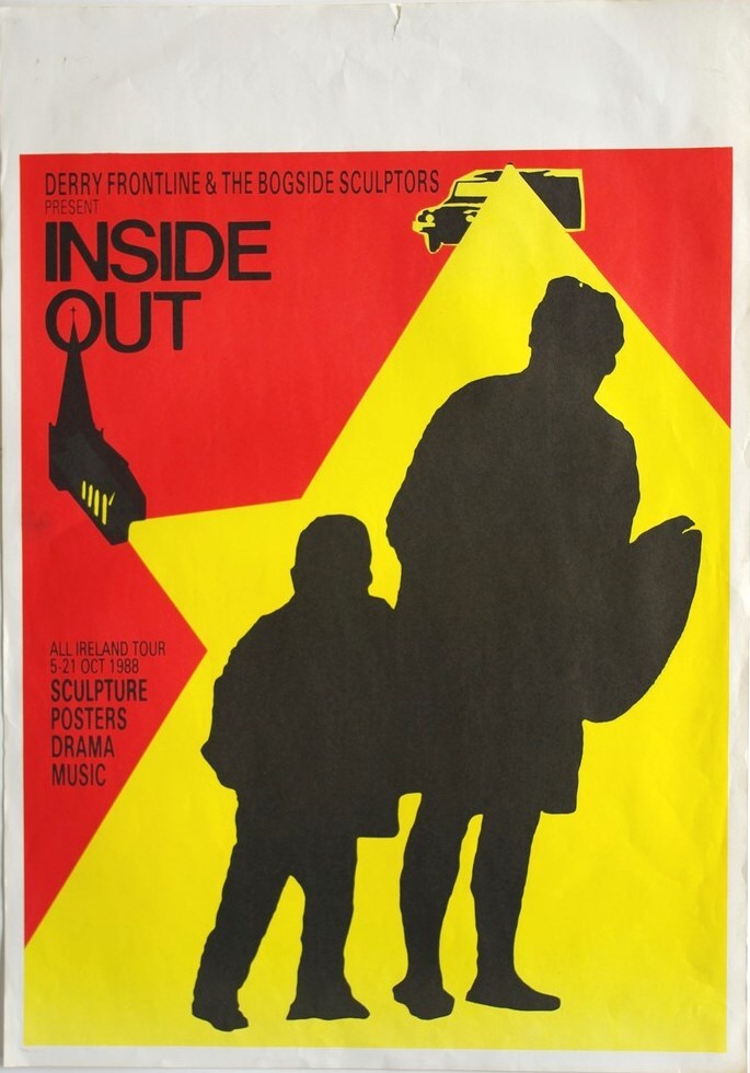 Scope and ContentPoster with an image of two people caught in spotlights and the text: Derry Frontline and Bogside Sculptors present Inside Out. All Ireland tour 5-21 Oct 1988. Sculpture, posters, drama, music