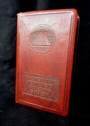Physical descriptionLength: 119mm x Width: 75mm. Colour: Red and Gold. Materials: Brass, plastic, hessian. Method: Moulded, stamp. Manufacturer: Pearson, Page, Jewsbury.