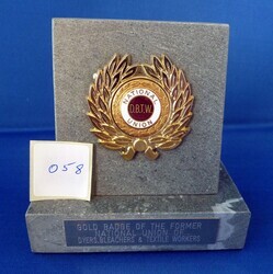 Scope and ContentGold badge of the former National Union of Dyers Bleachers and Textile Workers mounted in stone