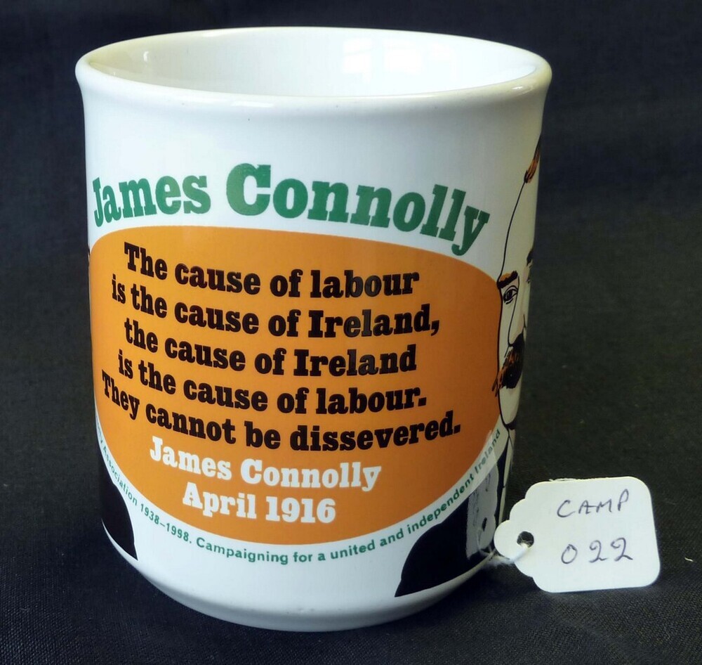 Scope and ContentConnolly Association mug: Two portraits of James Connolly with the quote "The cause of labour is the cause of Ireland, the cause of Ireland in is the cause of labour. The two cannot be dissevered." James Connolly, April 1916