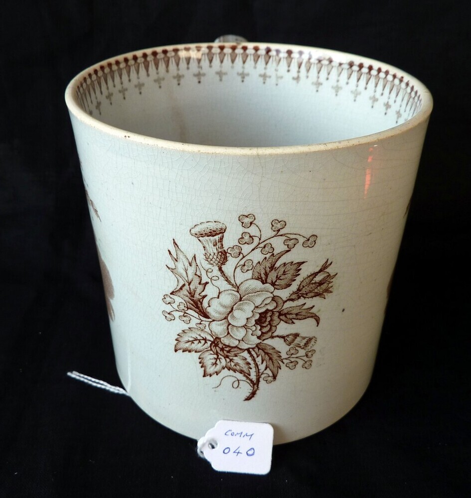 Physical descriptionRim diameter: 125mm. Height: 154mm. Shape: Fluted cup. Colour: Brown and white. Materials: Clay, glaze, paint. Method: Transfer