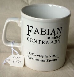 Scope and ContentMug commemorating the Fabian Society centenary 1884-1984. Front - Fabian Society Centenary. RH Tawney by Vicky. "Socialism and Equality". Rear - caricature of RH Tawney