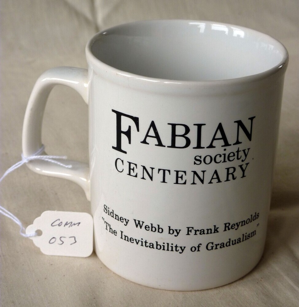Scope and ContentMug commemorating the Fabian Society centenary 1884-1984. Front - Fabian Society Centenary. Sidney Webb by Frank Reynolds. "The Inevitability of Gradualism". Rear - caricature of Sidney Webb