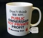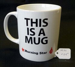 Scope and ContentMorning Star and Fire Brigades Union mug. Front - 'This is a mug'. Back 'Don't think we are. Public Ownership not Private Profit'.