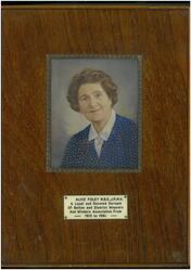 Scope and ContentImage of Alice Foley in a wide wooden frame with the inscription Alice Foley M.B.E., J.P, M.A. A Loyal and Devoted Servant Of Bolton and District Weavers, Winders and Warpers Association From 1913 to 1961 on a plaque below