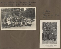 Scope and ContentIndependent Labour Party Summer School, Bangor, 1944. Double sided panel of five photographs, four showing groups of students and one with James Maxton, John McGovern and 'Percy as the PM'
