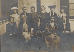 Scope and ContentPhotograph of a group of Women's Social and Political Union members including Emmeline Pankhurst (2nd right front row) and Sylvia Pankhurst (2nd right back row)