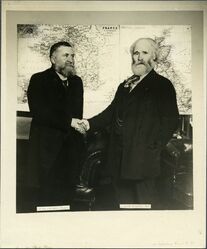Scope and ContentFormal portrait of Jean Jaures and Keir Hardie shaking hands in front of maps of France and the United Kingdom