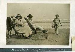 Scope and ContentInformal portrait of Marion Phillips and Mary McArthur sitting in deck chairs, with 'Nancy' [Anderson] carrying a bucket