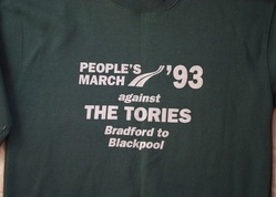 Scope and ContentDark green with "People's March Against the Tories '93 Bradford to Blackpool" in white lettering on the front and the itinerary of the march in white lettering on the back