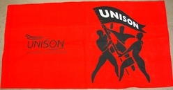 Scope and ContentBright red flag with "UNISON the public service union" in black lettering, with an image of three people holding up a UNISION flag