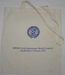 Scope and ContentCream cotton bag with the International Physicians for the Prevention of Nuclear War and "IPPNW 10th anniversary world Stockholm 27-30 Juni 1991