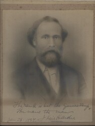 Scope and ContentBlack and white portratit of Keir Hardie with the inscription on front "Therewith is but the guinea stamp. The mans the man, Jan 25 1897 J. Keir Hardie". Another inscription on back "This picture hung on the wall of the Clarion Clubhouse Handforth for 40 years, and at Valley House for 13 years. At Easter Meet, Durham, 1951, Manchester presented the picture to Bert Brown of London knowing he would value it." There is label on back saying Property of The Keir Hardie Memorial Committee.