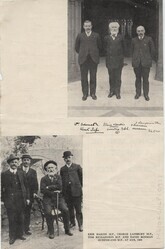 Scope and ContentTwo black and white photographs on a page taken from a printed publication. The top section has a photograph of Keir Hardie with William Anderson and Benjamin Stone, dated 6 Feb 1911. The bottom section has a photograph of Keir Hardie with George Lansbury, Tom Richardson and David Bonman in Ayr, 1909. On the reverse side there are handwritten facsimiles of Keir Hardie's Mid Lanark election address and his tax statement for 1911, plus two adverts for books by Hardie.