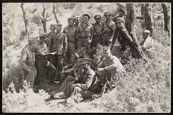 Scope and ContentInformal photograph of a large group of men sitting and standing amongst trees. Pencilled on back "Calalayud" and signed by Sam Wild