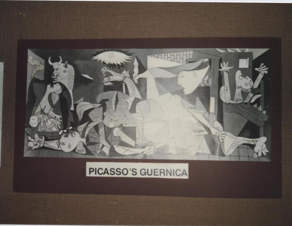 Scope and ContentPhotograph of an exhibit in an Oldham Library exhibition entitled "The Oldham men who Fought in Spain 1936-1938", at Oldham Local Interest Centre 29 January-24-May 1986: Picasso's Guernica