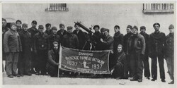 Scope and ContentMachine gun section of the Canadian Mackenzie-Papineau Battalion, with their banner