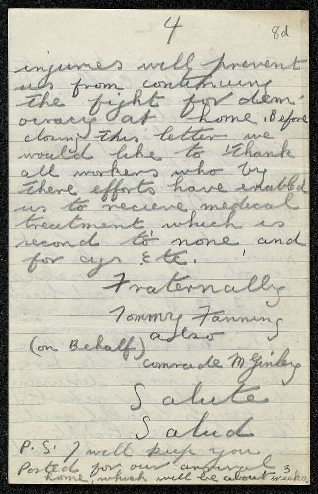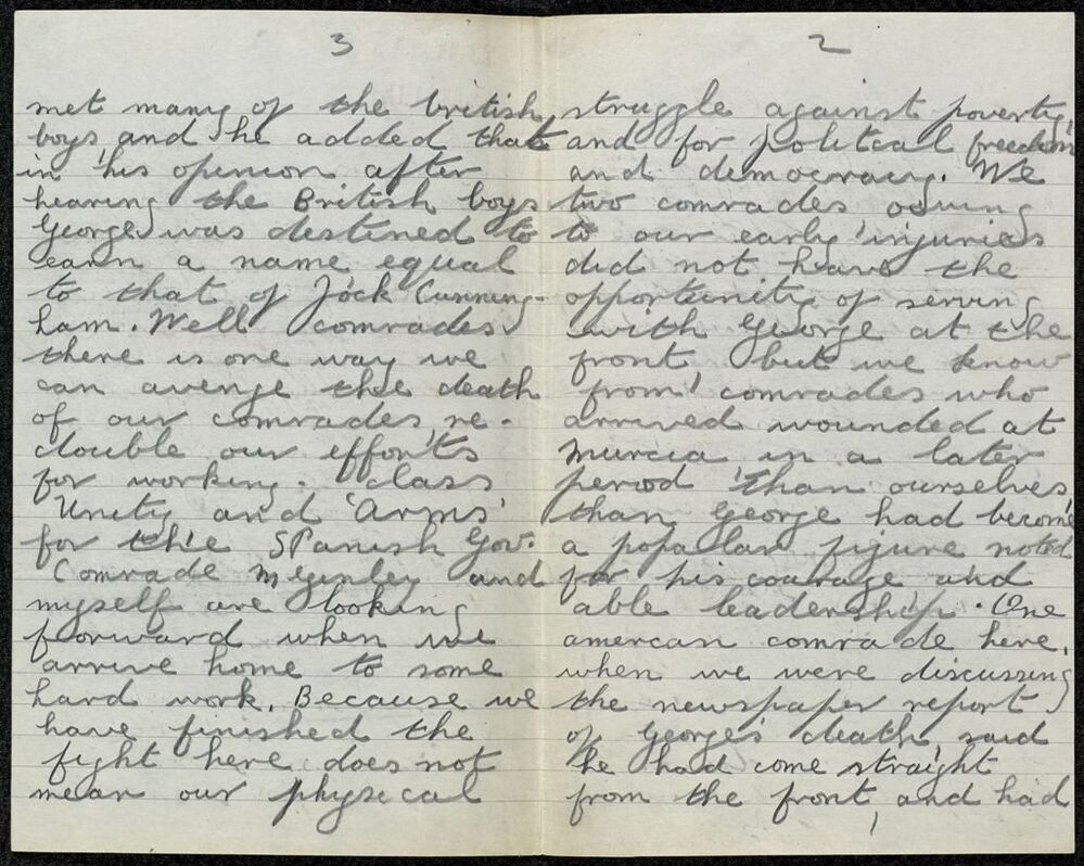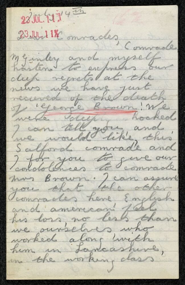 Letter from Tommy Fanning in Spain about the death of George Brown (14 Jul 1937)