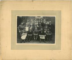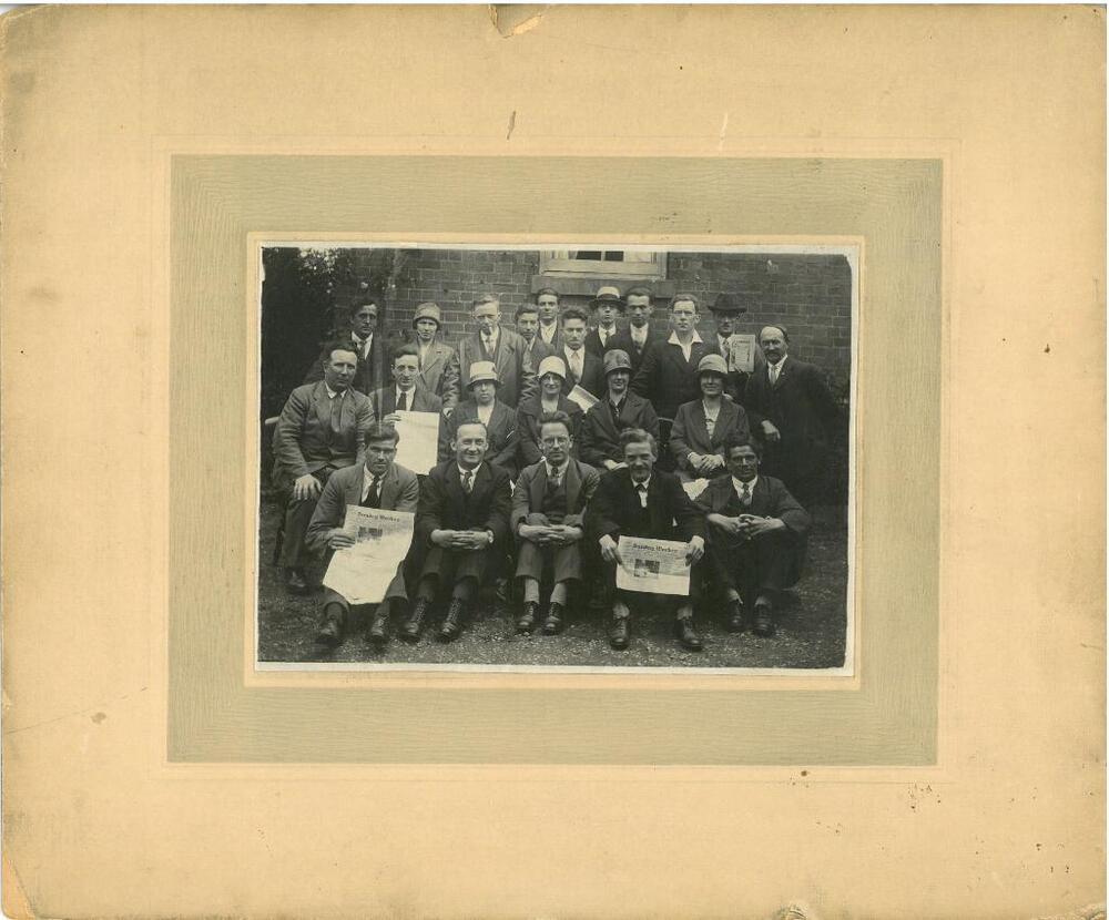 Scope and ContentBlack and white group photograph with Jim Gardner, Amalgamated Union of Foundry Workers in the centre, surrounded by a group of men and women hold in copies of various communist journals