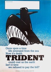Scope and ContentPoster with an image of a submarine looking like a shark emerging from the sea and the text: Once upon a time life emerged from the sea. Now it's death. Trident could cost us the earth. Isn't it time we refused to pay the bill