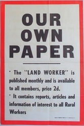 Scope and ContentPoster headed Our own paper and with the text: The Land Worker is published monthly and is available to all members, price 2d. It contains reports, articles and inforamtion of interest to all Rural Workers