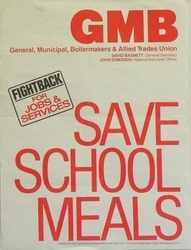 Scope and ContentPoster with the text: GMB. General, Municipal, Boilermakers and Allied trades Union. Save school meals. Fightback for jobs and servicesProduced by the GMB (GMBATU)