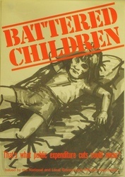 Scope and ContentPoster with an image of a crying child and the text: Battered children, that's what public expenditure cuts could mean! Issued by NALGO.
