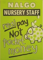 Scope and ContentPoster with an image of coins dropping into a piggy bank and the text: NALGO nursery staff, real pay not pocket money