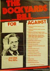 Scope and ContentPoster with an image of Michael Heseltine and giving details of who is for and who is against the Dockyard Bill
