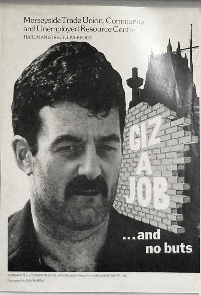Scope and ContentPoster with a photograph of Bernard Hill as 'Yosser' Hughes' in Alan Bleasdale's Boys from the Black stuff and the text: Giz a job ... and no buts