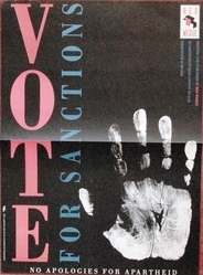 Scope and ContentPoster with an image of a hand print and the text: Vote for sanctions. No apologies for Apartheid