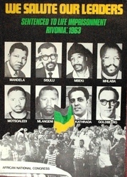 Scope and ContentPoster with images of Nelson Mandela, Walter Sisulu, Govan Mbeki, Raymond Mhlaba, Elias Motsoaledi, Andrew Mlangeni, Ahmed Kathrada and Denis Goldberg and the text: We salute our leaders. Sentenced to life imprisonment Rivonia: 1963