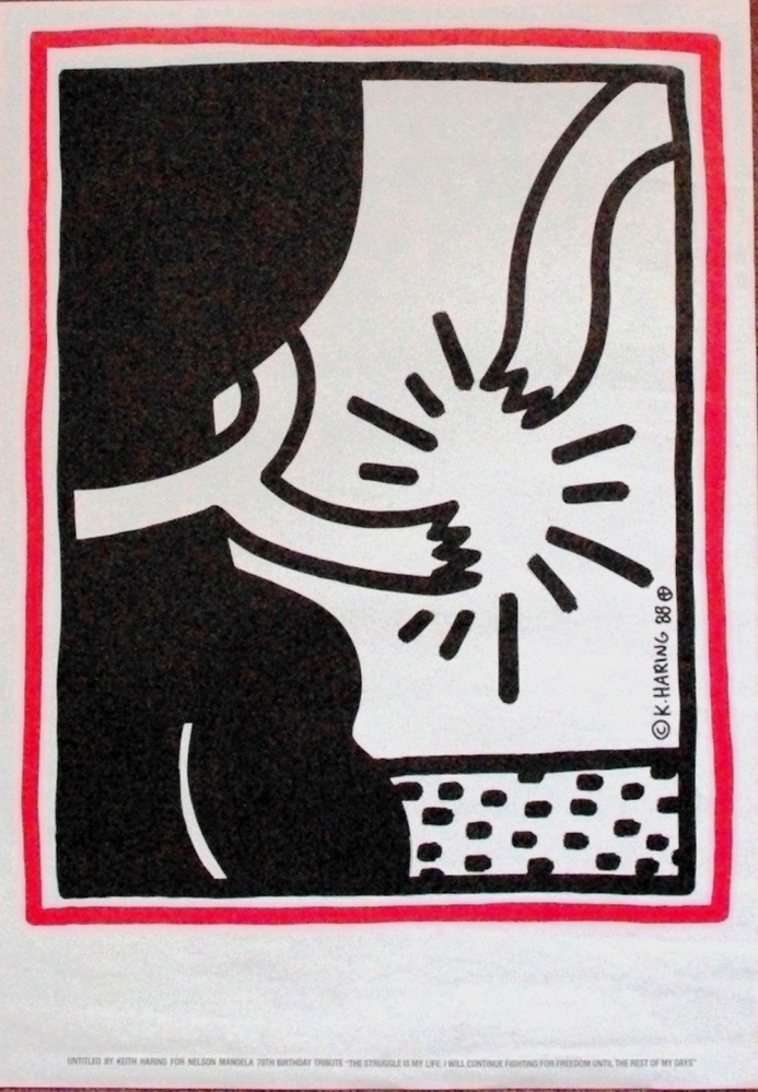 Scope and ContentPoster of an untitled image by Keith Haring for Nelson Mandela 70th birthday tribute. "The struggle is my life, I will continue fighting for freedom until the rest of my days"