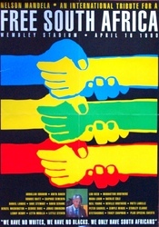 Scope and ContentPoster with an image of three sets of clasped hands and the text: Nelson Mandela. An international tribute for a free South Africa, Wembley Stadium, April 16 1990. [with details of the acts]. We have no whites, we have no blacks. We only have South Africans