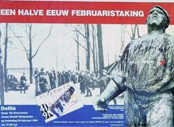 Scope and ContentPoster with an image of a large statue, a stamp and a black and white photo and the Een Halve Eeuw Februaristaking. For an event on Monday 25th February 1991 commemorating the 1941 February strike in The Netherlands organised by the Communist Party of the Netherlands in defence of persecuted Dutch Jews and against the anti-Jewish measures and activities of the Nazis in general.