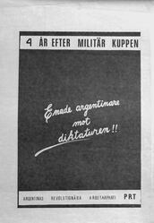 Scope and ContentPoster with the text: 4 ar efter militar kuppen. Enade Argentine mot diktaturen. Argentinas Revolutionara Arbetarparti