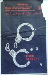 Scope and ContentPoster with an image of broken handcuffs and the text: Uruguay. Libertad para los presos politicos. Freedom for political prisoners. Liberte pour les prisonniers politiques. Liber Seregni